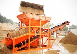 一、产品概述  筛沙机是仿照人工利用斜面筛网筛砂的工作原理,采用平置滚筛筒,并保证料流在筛筒中的多圈内螺旋叶片间可连续滚筛五圈以上,从而使砂料反复翻滚、滑动而充分离散、分离;不同于斜置滚筛引起的大小料相互推挤、埋压,筛分过程匆忙;也不同于斜置振动筛的大小料振跳、混料。