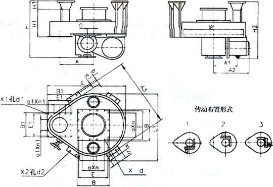 型 号 | L | L1 | L2 | H | H1 | F | E | E1 | E2 | E3 | G | G1 | G2 | G3 | n | d |