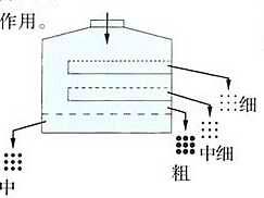 双精度逆向筛分主要用于多层式、多种规格原料分级时摇摆筛的结构设计,此种结构设计与普通振动筛先筛粗料,再筛选细料的方式相反,细颗粒原料的筛选,较粗或较大粒级的原料保持在筛网上,以防止细粒夹杂在粗料中使得筛分不够透彻,摇摆筛可采用弹跳球或超声波等清网方式,起到较好的清网效果,尤其适用于大粒级原料的精细分级。如下图2所示。