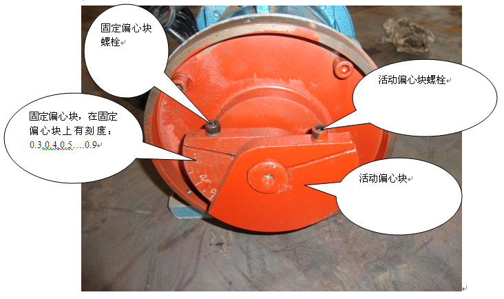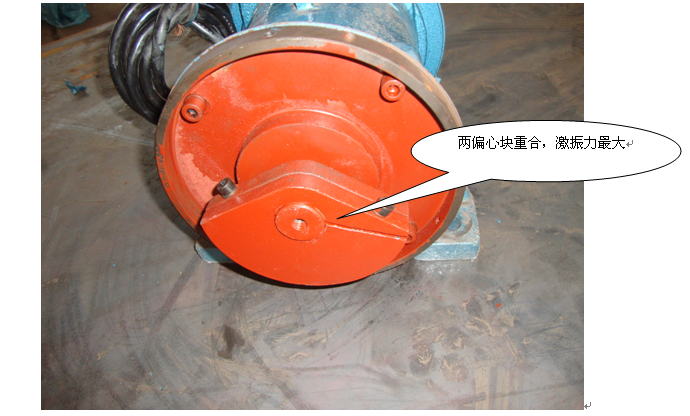 三:松开活动偏动块上的固定螺栓,调整活动偏心块与固定偏心块之间的夹角,当两偏心块完全重合时,振动电机的激振力大,当两偏心块垂直时,振动电机的激振力小。.png)