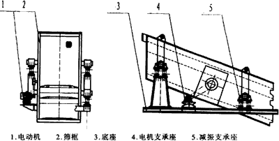 YZ圆振动筛由块偏心式激振器、筛箱、电动机、底座及支承装置组成。筛面倾角20°。