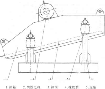 由于激振器布置在筛箱重心的上方,故筛箱两端椭圆长轴成下八字形,且给料端椭圆长轴的上端朝向排料方向,有利于给到箱机上的物料迅速散开,而排料端椭圆长轴上端逆着排料方向,减低物料运动速度,有利于难筛物料透筛,且圆弧状的筛面又增大了筛机的有效面积,从而可以提高其处理能力。
